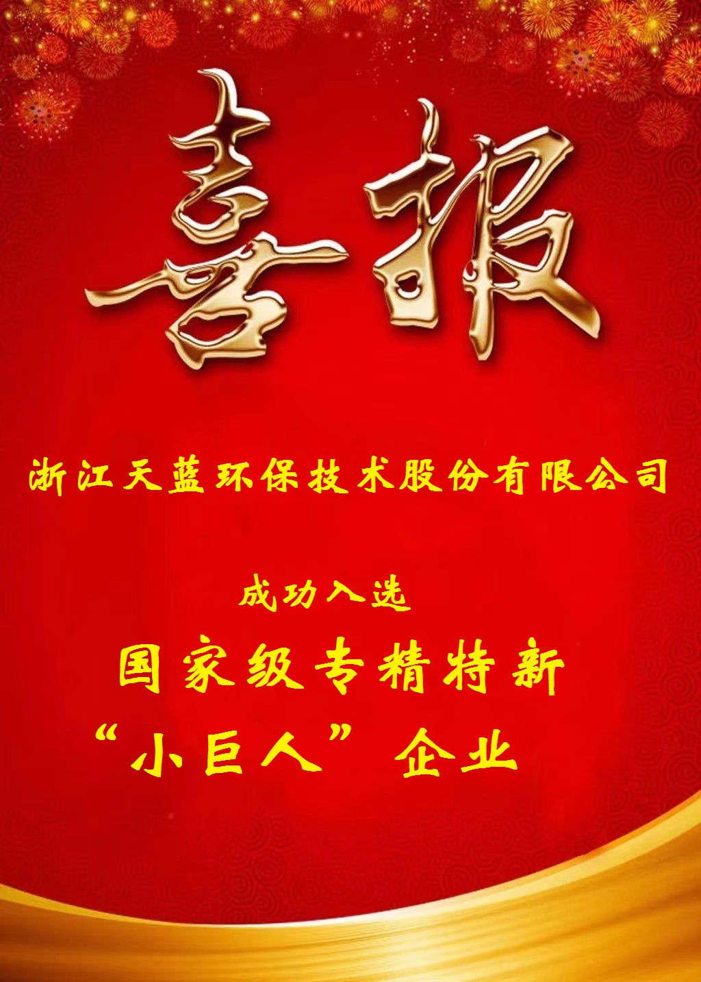 近日,浙江省經(jīng)濟(jì)和信息化廳發(fā)布了《關(guān)于浙江省第四批專精特新“小巨人”企業(yè)和第一批專精特新“小巨人”復(fù)核通過企業(yè)名單的公示》,天藍(lán)環(huán)保憑借在大氣污染治理領(lǐng)域的技術(shù)創(chuàng)新綜合實(shí)力和市場占有率,成功入選國家級專精特新“小巨人”企業(yè)名單。